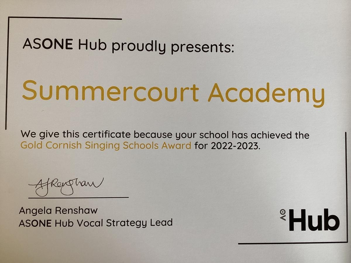 Our Music intent at Summercourt is to provide all our pupils with a range of learning experiences which create confident performers who maximise the knowledge and understanding they acquire through their journey through our school. Pupils gain a firm understanding of what music is through a constant range of listening, singing, playing, evaluating, analysing and composing across a wide variety of topics as part of our immersive curriculum. These learning opportunities provide exposure to a range of styles, traditions and musical genres.